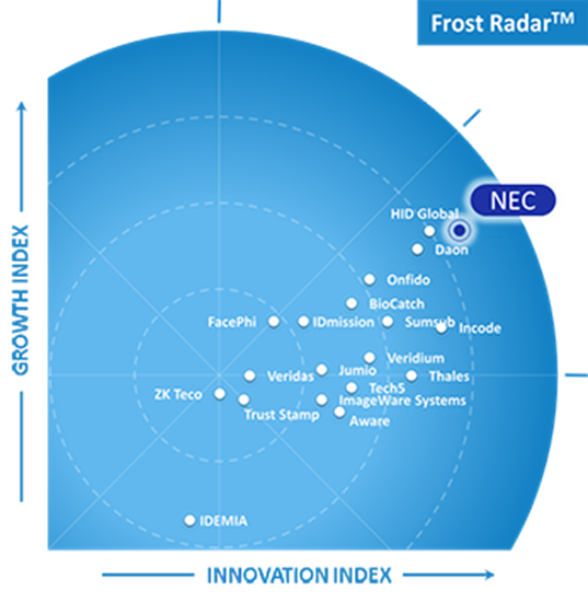 A Frost & Sullivan indicou que a NEC alcançou a liderança no Frost Radar™ em termos de Crescimento geral e em termos de Inovação, como resultado das suas constantes inovações no seu extenso portfólio.